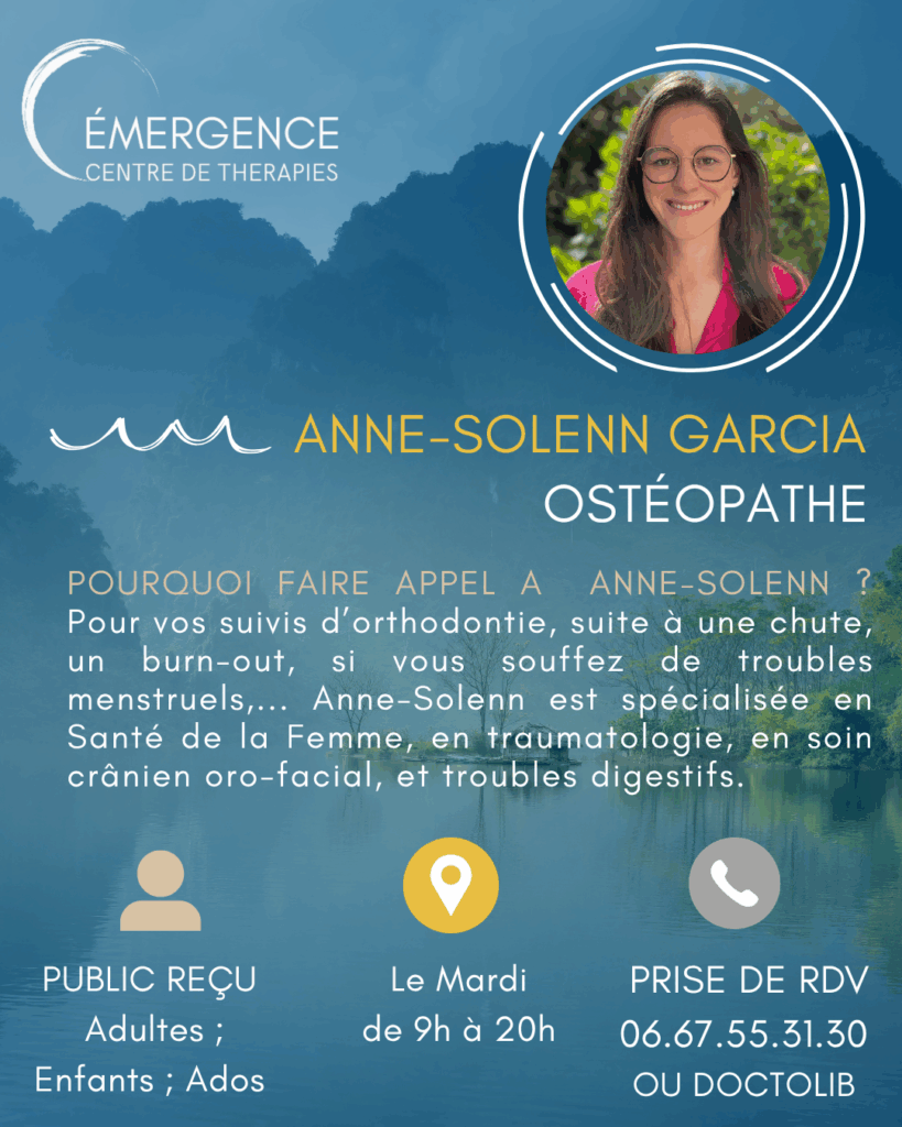 OSTÉOPATHE / Spécialisée en digestif, crânien, oro-facial, et santé de la femme.
