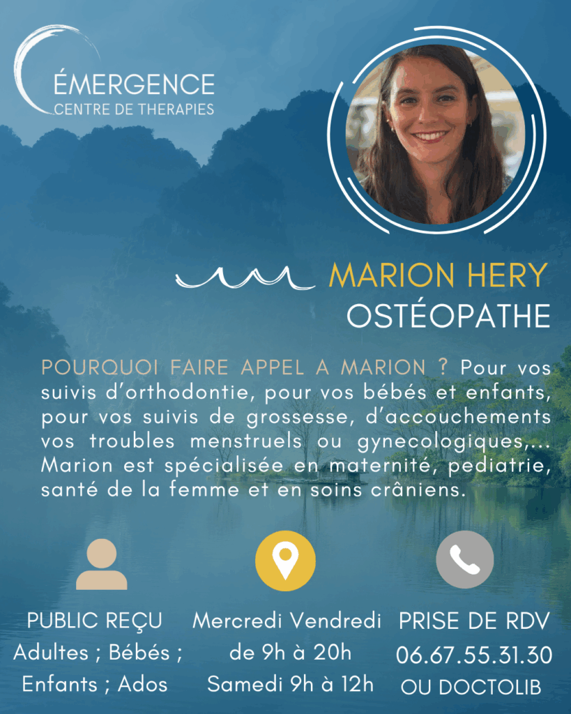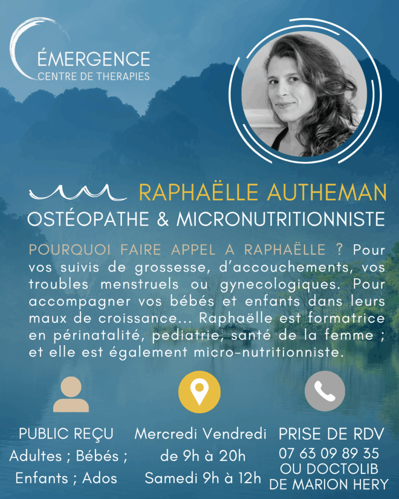 Remplacée certains jours par Raphaëlle Autheman, ostéopathe formatrice en périnatalité, et micro nutritionniste
